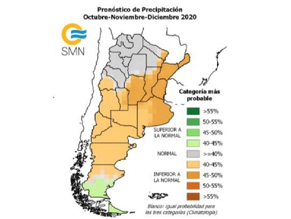 Con respecto al pronóstico trimestral (octubre-noviembre-diciembre) se espera que la precipitación se halle por debajo de los valores medios climatológicos para el noreste argentino, justo en el transcurso de la primavera con el aumento de temperaturas y el inicio del verano, la estación más calurosa del año.