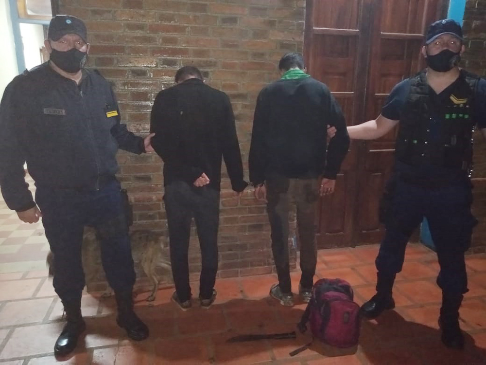 Ambos jóvenes fueron detenidos por los agentes, que secuestraron además en poder de estos un machete. Finalmente, el mayor de 18 años fue alojado en sede policial a disposición de la Justicia, en tanto que el menor fue entregado a sus padres para resguardo.