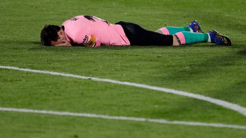 Messi, a tono con sus compañeros, mostró un desempeño irregular y casi no tuvo chances para marcar, a excepción de un remate que se estrelló en el poste derecho de Soria en el primer tiempo y otro que salió desviado, en tiempo de descuento, cuando el elenco visitante ya había hecho entrar como revulsivos al brasileño Philippe Coutinho y el juvenil Ansu Fati.