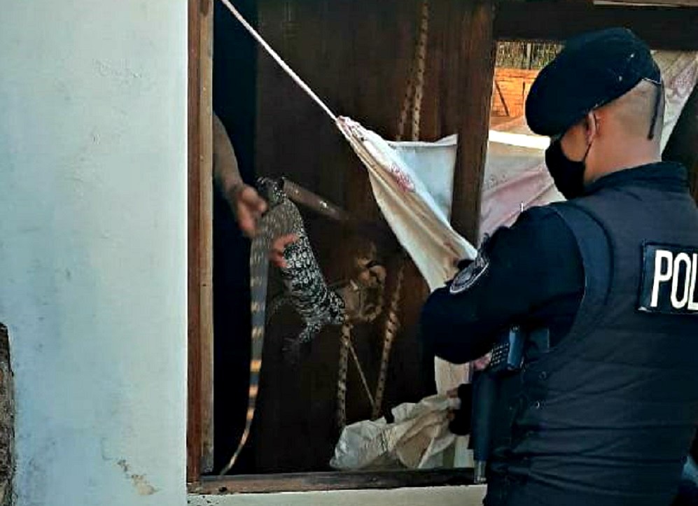 Todo comenzó pasadas las 17 cuando una vecina de 36 años y domiciliada en la calle Guatemala, de esta ciudad, manifestó a la Policía que en su casa habría ingresado un reptil (lagarto) de gran tamaño.