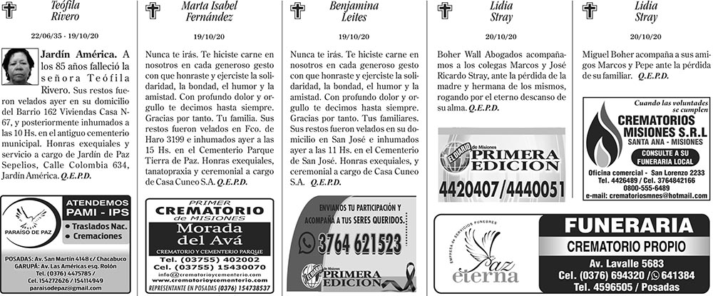 FÚNEBRES DEL MIÉRCOLES 21 DE OCTUBRE DE 2020