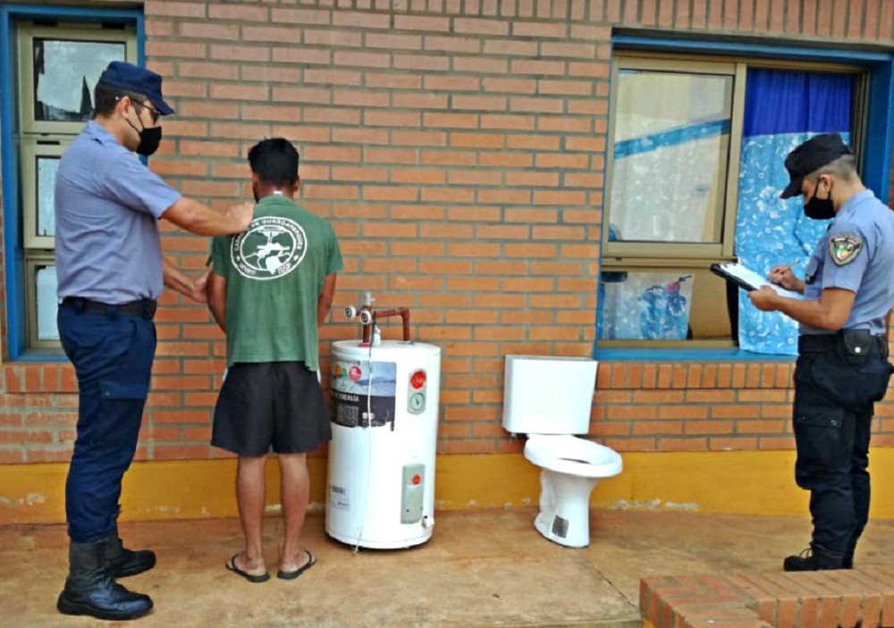 A la hora de hurtar para el ladrón cualquier elemento es bienvenido. Así lo pensó este joven de 23 años, que robó elementos del baño de una casa ajena, pero sus andanzas no llegaron muy lejos en San Pedro y terminó detenido, tras extraer un inodoro y un termotanque.