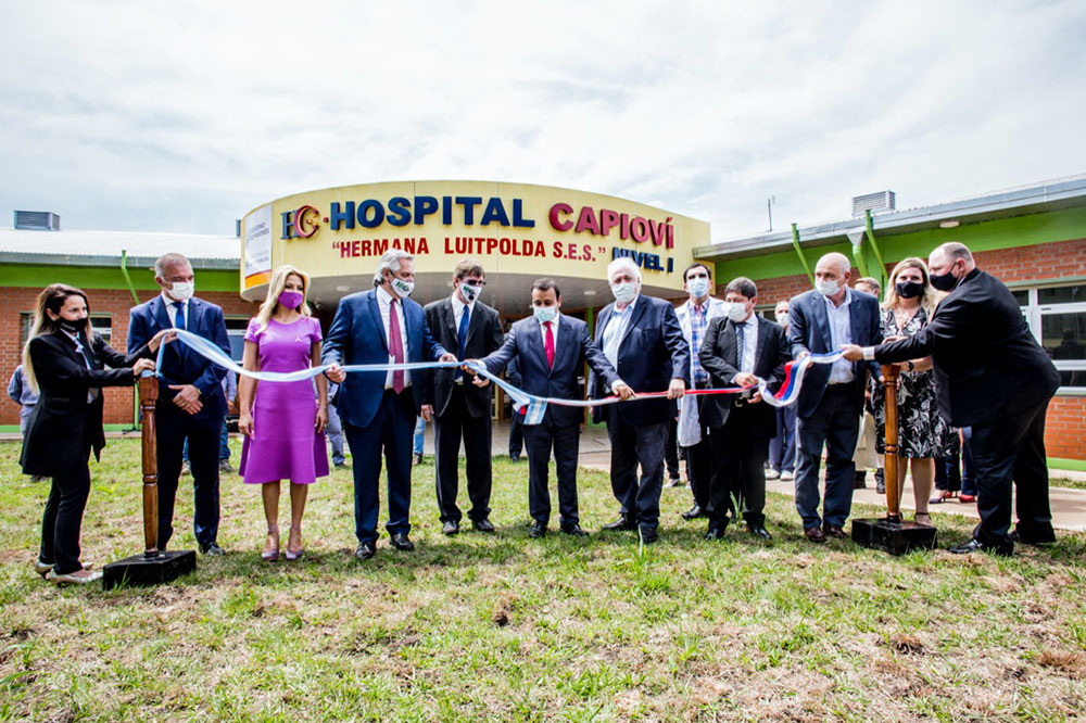 Posteriormente se trasladaron hasta el Hospital Nivel I de Capioví para dejarlo formalmente inaugurado. Se trata de una obra que empezó a construirse en el 2017 pero en el 2019 las obras quedaron parcialmente paralizadas. Desde allí ambos funcionarios coincidieron en que la salud siempre debe estar en el tope de la agenda de las políticas públicas. Cabe señalar que este centro de salud está estratégicamente ubicado para atender una población de aproximadamente 18 mil habitantes. Contará con un plantel de 32 agentes sanitarios y prestará los servicios de emergencias, diagnóstico por imágenes, clínica médica, ginecología y laboratorio de análisis clínicos. Dispone de un total de 25 camas, distribuidas en 20 de internación, 2 de shock room y 3 de aislamiento para COVID-19. Además, tendrá a disposición 1 ambulancia para traslados.