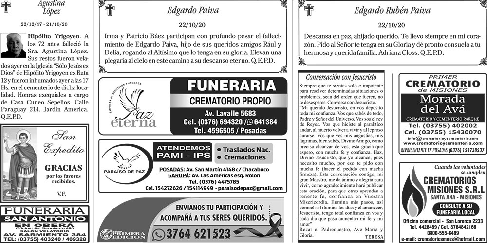 Tags: Fúnebres 24-10-2020
