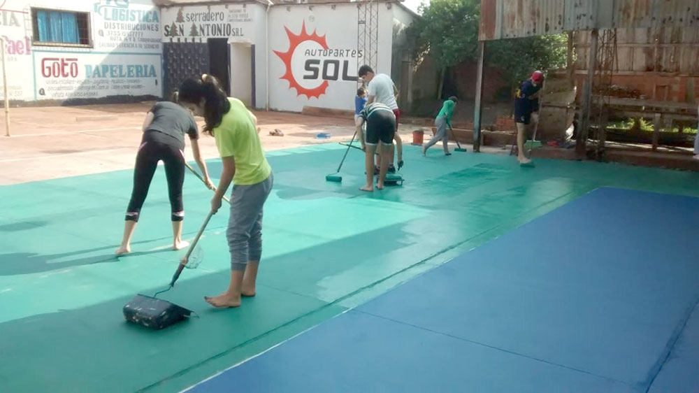 El pueblo también colaboró, después de todo se estaba levantando otra vez el emblemático club San Rafael. “Nos llevó una semana de agosto y todo septiembre hacer el piso totalmente nuevo para la cancha de vóley y la de fútbol de salón”, señaló el profe. El viernes 16 de octubre terminaron las obras en el piso de la cancha y los estrenaron al otro día, el sábado 17.