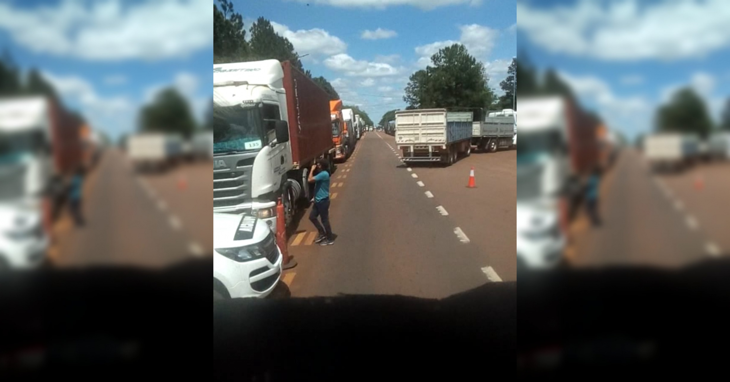 Transportistas iniciaron un corte total en la ruta 14 frente al puesto de control de la Dirección General de Rentas en el Cruce San José.