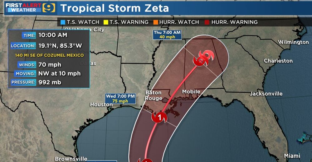 El Centro Nacional de Huracanes de Estados Unidos (NHC) informó que Zeta se convirtió en huracán de categoría 1 -en una escala de 5- con vientos de hasta 150 kilómetros por hora y prevén que se fortalezca aún más durante el día de hoy llegando al área de Nueva Orleans, en Luisiana, como categoría 2.