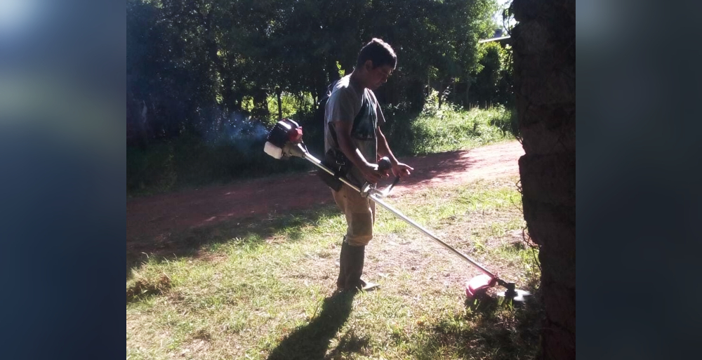 Aldo Miguel tiene 30 años y actualmente reside en San Ignacio, pero es oriundo de Santo Pipó. “Comencé con este emprendimiento y hasta ahora me va bien. Mi trabajo consiste en cortar el césped, podar árboles, limpiar jardines y parques”, detalló.