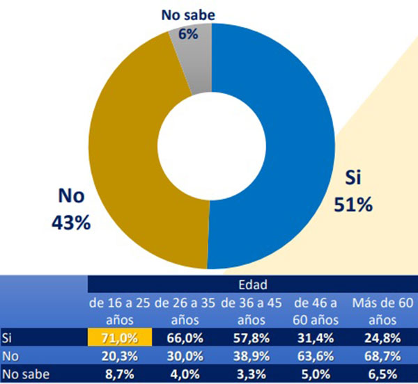 En esa postura también hay un 66% de quienes tienen entre 26 y 35 años; un 57,8% de los que atraviesan los 36 a los 45 años; y un 31,5% que vive los 46 a 60 años.
