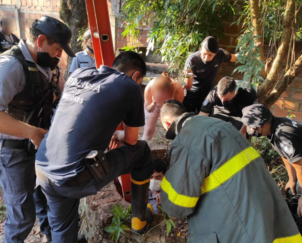 Este miércoles por la tarde efectivos de la División Bomberos Zona Sur de la Policía rescataron a una niña de 8 años que cayó en un pozo de agua seco, de unos 13 metros de profundidad, en una vivienda del barrio Santa Rita de Posadas.
