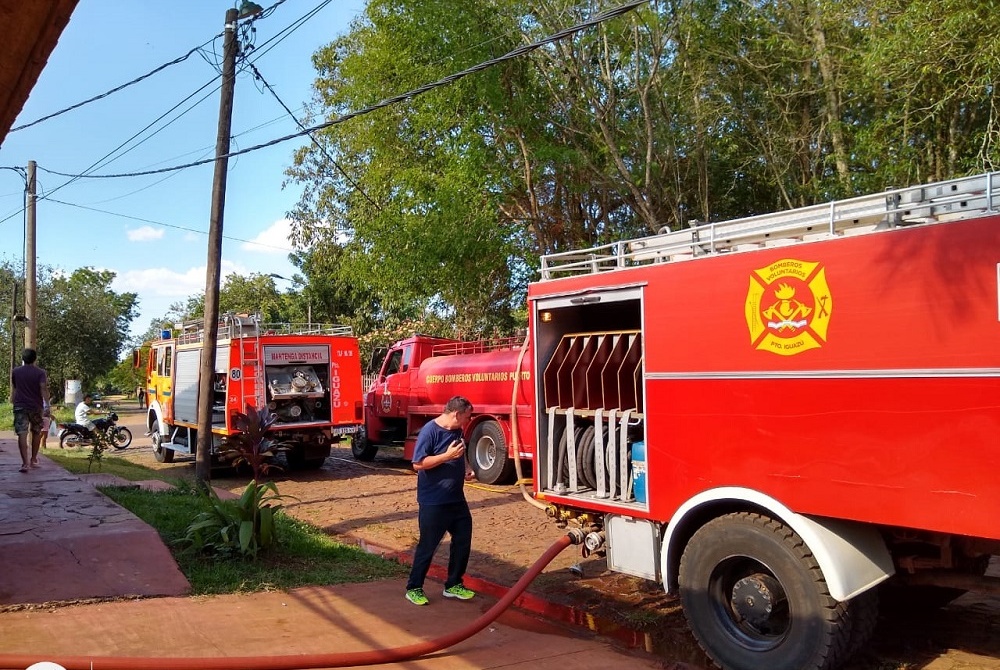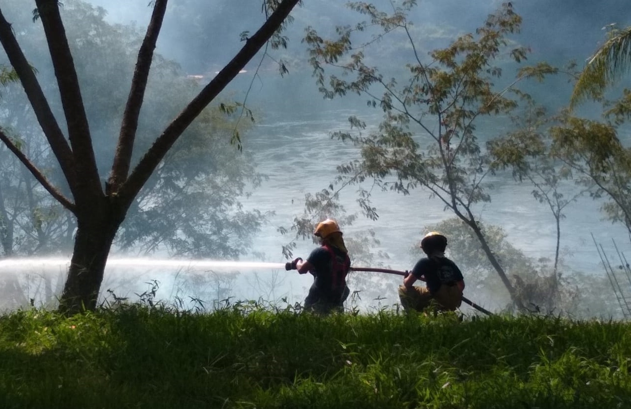 En la tarde de hoy los Bomberos Voluntarios de Iguazú recibieron un llamado acerca de un incendio en un pastizal que representaba un riesgo de propagarse hacia unas cabañas en el barrio Santa Rosa, a orillas del río Paraná.