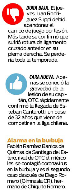 OTC tuvo varios puntos flojos y tendrá varios días de descanso para mejorar aspectos de su juego. El martes enfrentará a Olímpico de Santiago del Estero que ayer derrotó por un categórico 115-58 a Atenas. El miércoles, en tanto, jugará con el puntero, Quimsa.