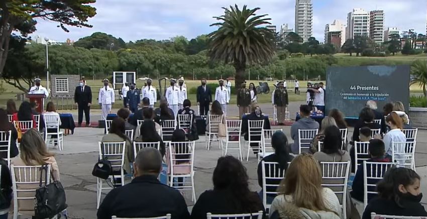 Contó también que, al mismo tiempo en que se realizó el acto en Mar del Plata, dos buques de la Armada rendían honores a los tripulantes en alta mar, en el lugar donde se produjo el naufragio.