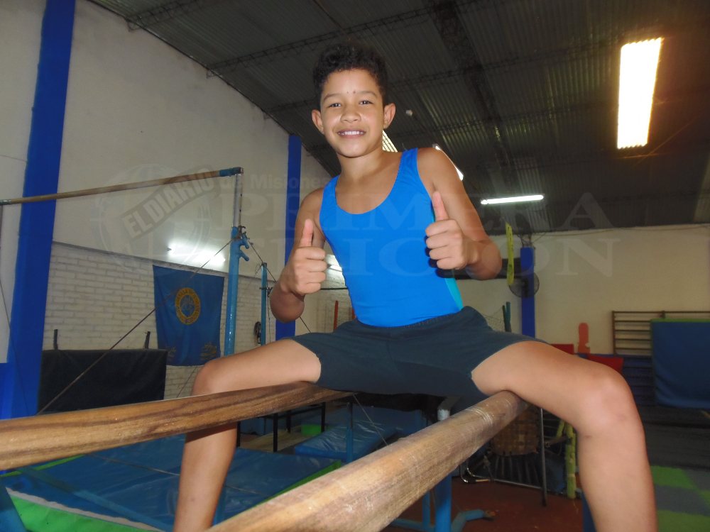 Becado en la última edición de la Fiesta del Deporte Misionero de PRIMERA EDICIÓN y respaldado durante la pandemia por el Ministerio del Deporte, el jovencito oriundo del barrio San Martín de la Capital del Trabajo se entrena a diario junto al profesor Daniel Silvero, su entrenador, en las instalaciones del Gym Art. Una escuela de Gimnasia que cumplió veinte años de trayectoria en esta temporada.