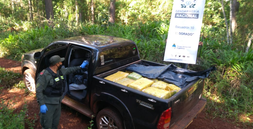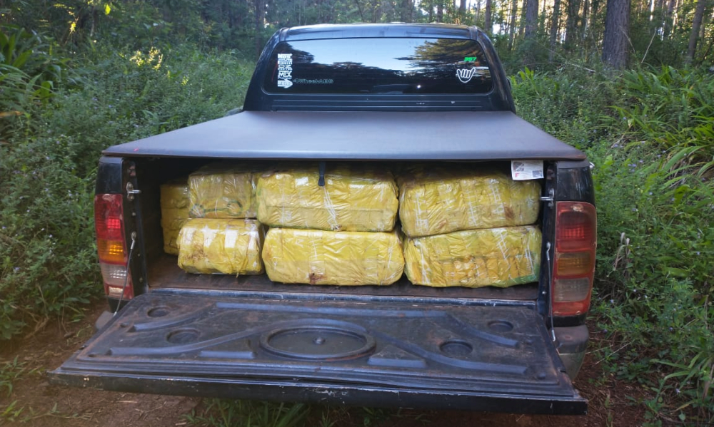Como resultado del operativo, GN halló la camioneta en la zona de un pinar, sin ocupantes y cargado con 41 grandes bultos ocultos en el sector de la caja.