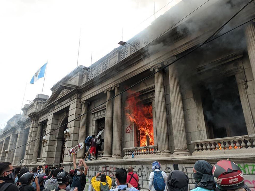 Angry protesters stormed #Guatemala‘s Congress building and set it on fire during a protest to demand the resignation of President Alejandro Giammattei, following the approval of a budget cutting educational and health. pic.twitter.com/9a7Urw0sel