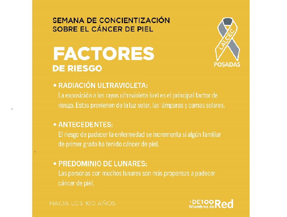 En la Semana de Concientización del Cáncer de Piel, que se extiende desde este lunes hasta el viernes 27 de noviembre, desde la Liga Argentina de Lucha Contra el Cáncer (LALCEC) Posadas tienen como objetivo destacar la importancia del control dermatológico anual como principal chequeo para la detección temprana de este tipo de cáncer, e informar a la población sobre este método de diagnóstico para detectar con mayor éxito esta patología y también movilizar a la consulta a quienes detecten algún síntoma o irregularidad.