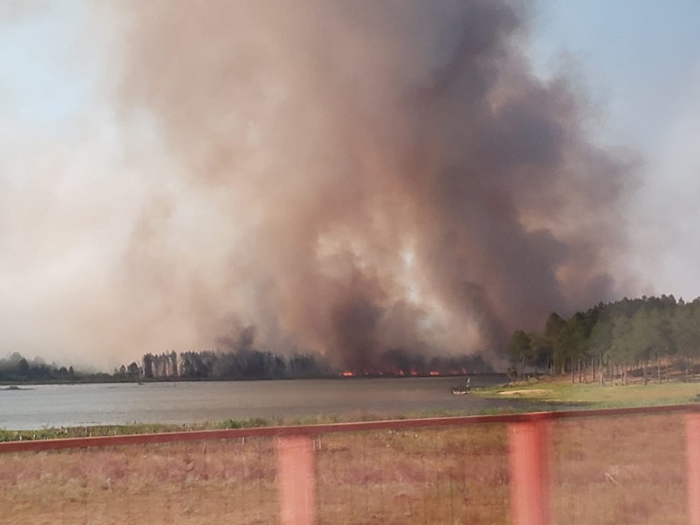 Pasado el mediodía de este lunes, un voraz incendio se desató en un extenso pinar que se ubica frente al puente sobre el arroyo Yabebirí en la ruta nacional 12, en cercanías de la localidad de San Ignacio.