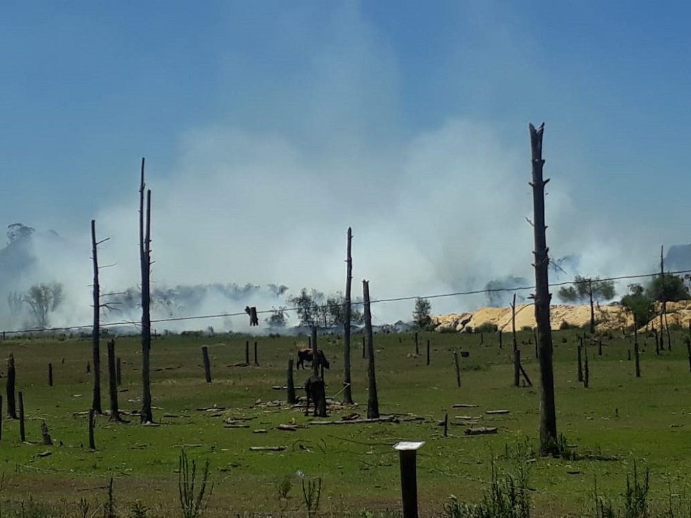 El barrio La Florida de Ituzaingó, en la vecina provincia de Corrientes sufre desde el sábado la quema de los desechos de los aserraderos que tiran en el humedal que existe en el barrio.