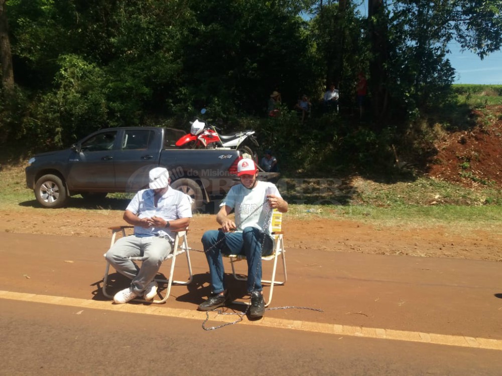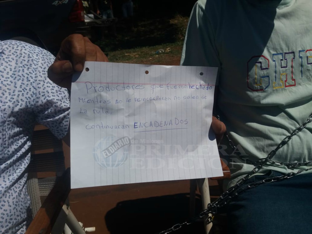 Productores tabacaleros se encadenaron sobre la Ruta Nacional 14, en San Vicente, a la altura del kilómetro 973.
