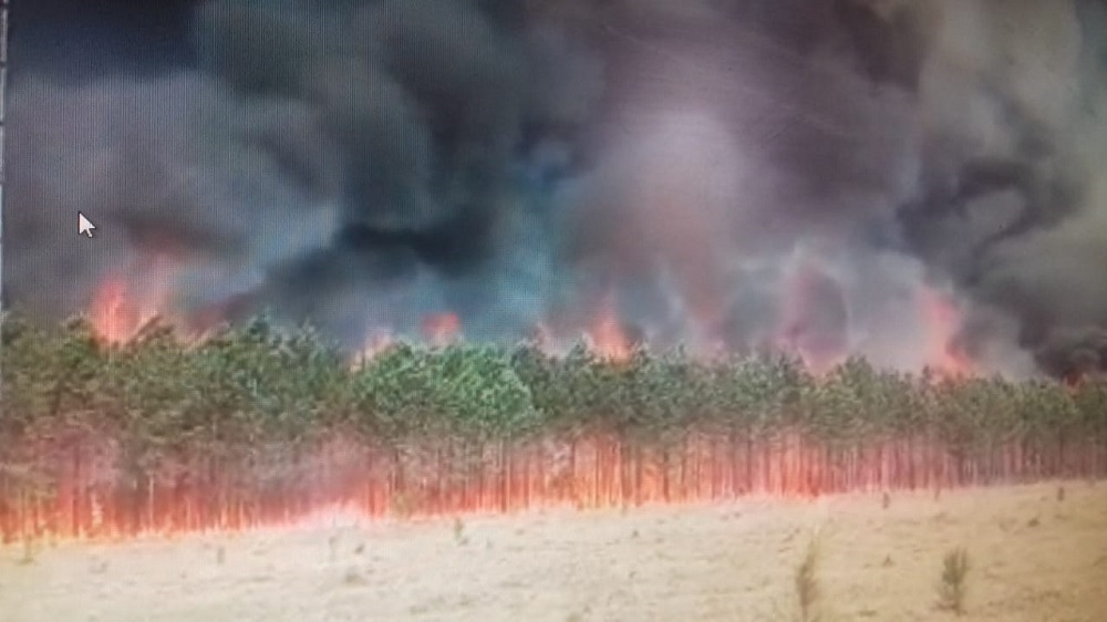 Desde ayer varios kilómetros de pinos y pastizales se están incendiando a la vera de la ruta provincial 37, en Gobernador Virasoro, en Corrientes.