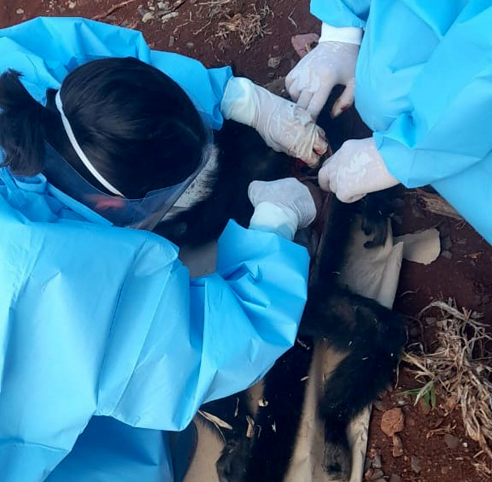 Will explicó que el biólogo Deise Angeloni, acompañado de inmediato por otro profesional, llegó a la ciudad donde se recolectaron las vísceras del animal para ser analizadas en Lacen en Florianópolis.