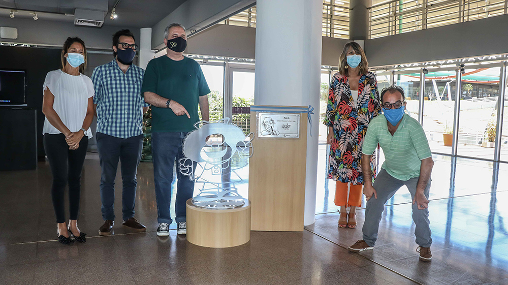 Joaquin Salvador Lavado Tejón, conocido universalmente como Quino, fue homenajeado en la mañana de este martes por el Parque del Conocimiento. Con la presencia de Claudia Gauto, su presidenta, y la Prof. Carolina Allaragüe, directora del Centro de Arte, se descubrió una placa con su nombre, bautizando así a la Sala Principal. Del acto participó también el diputado Hugo Passalacqua y, de manera virtual, Julieta Colombo, sobrina política y representante del creador de Mafalda.
