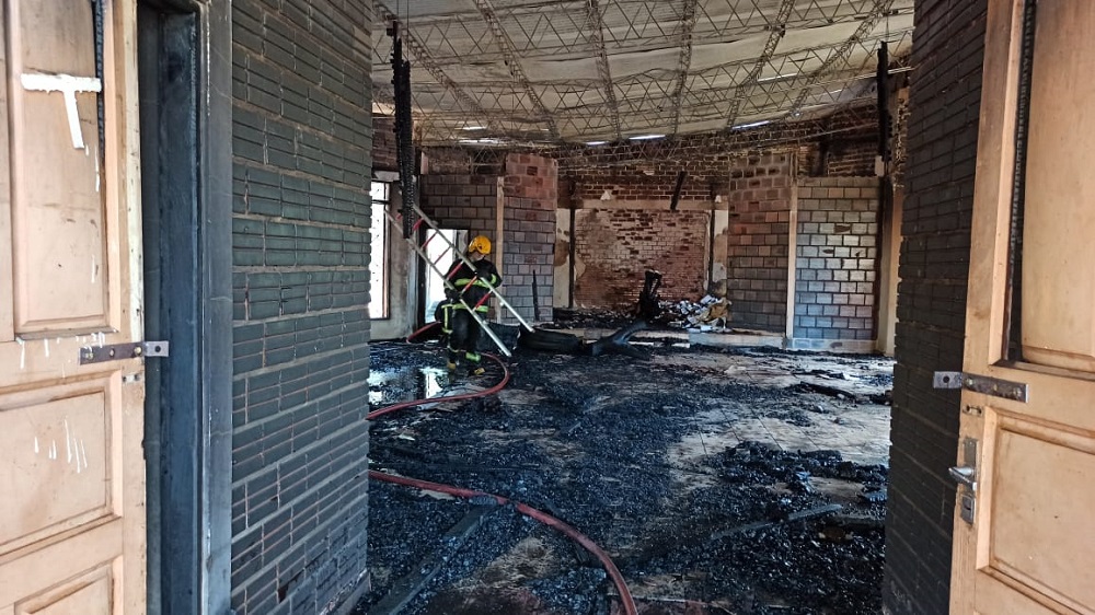 El incendio se desarrolló sobre el cielorasso y afectó a la estructura metálica y mampostería del edificio, como así también una escalera que conduce a un sótano.