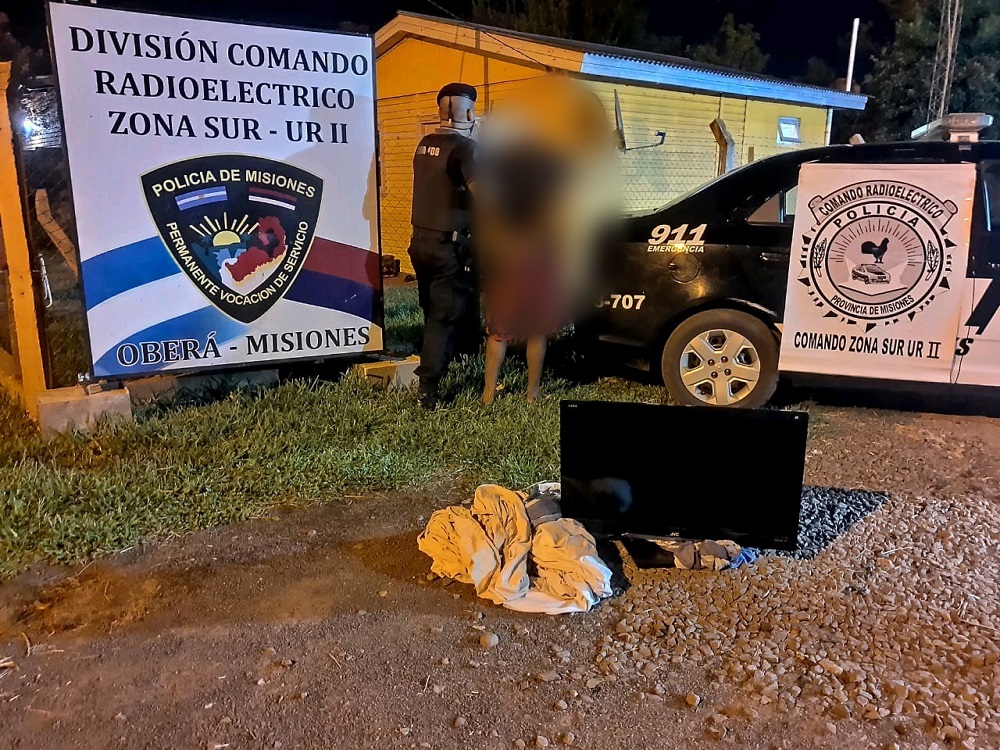 En las primera horas de este miércoles en el barrio System Vick de la localidad de Oberá integrantes del Comando Radioeléctrico Zona Sur detuvieron a un joven de 22 años, con el alias de “Sombra” y recuperaron un televisor de 32 pulgadas, elemento que fue sustraído de una vivienda ubicada en la calle Monte de Oca, de la misma ciudad.