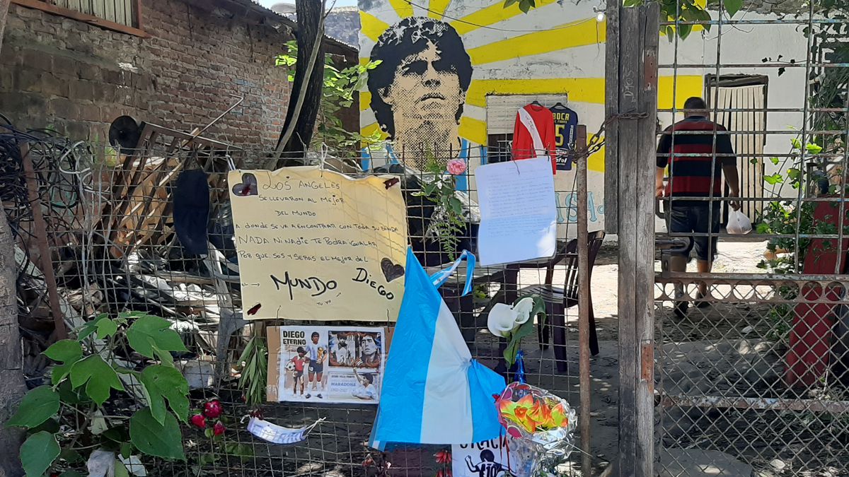 Al conocerse la noticia de la muerte del astro, los vecinos se acercaron a su hogar natal y lo convirtieron en un santuario dejando velas, carteles y banderas que permanecen en su fachada.