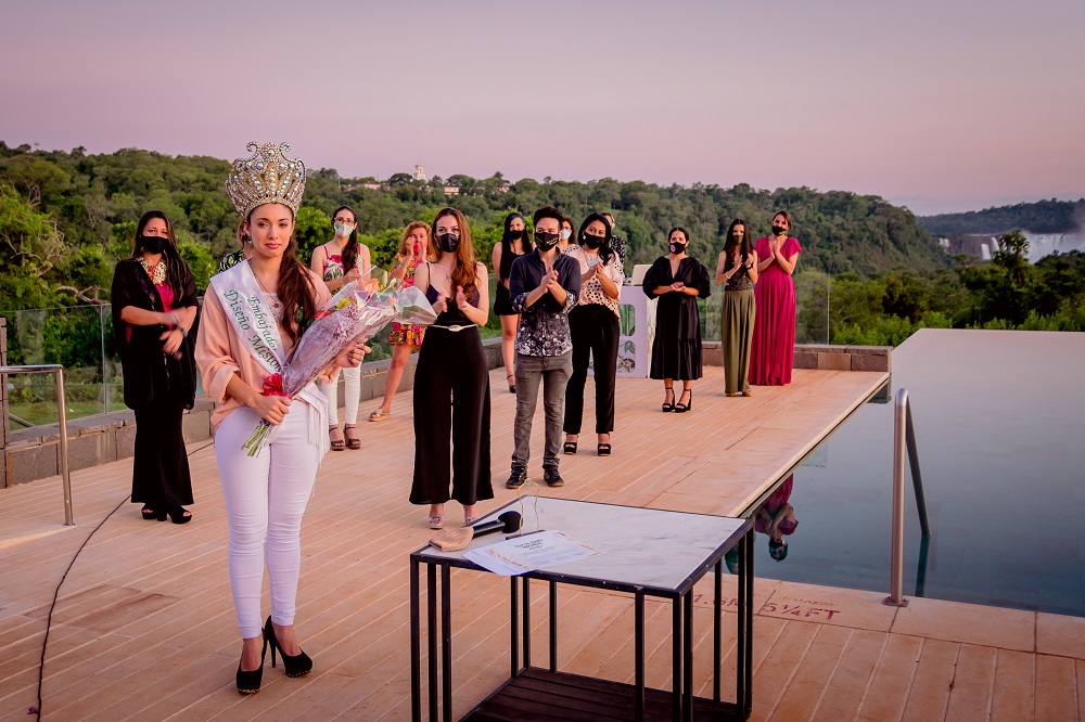 Entonces se escuchó el nombre de Alexandra Ma-vié Riveros en aquella imponente pasarela que conjuga el talento de los diseñadores misioneros con una de las Siete Maravillas Naturales del Mundo.