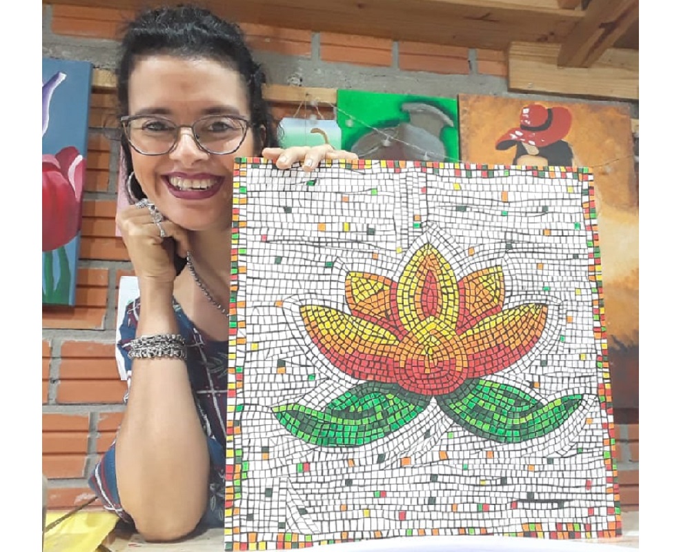 Ahora con su alma reparada, pinta en su taller. Toma capacitaciones, se instruye, y enseña para seguir multiplicando su arte, disfruta día a día la belleza de la vida, el amor por sus hijos y la pasión por la pintura.