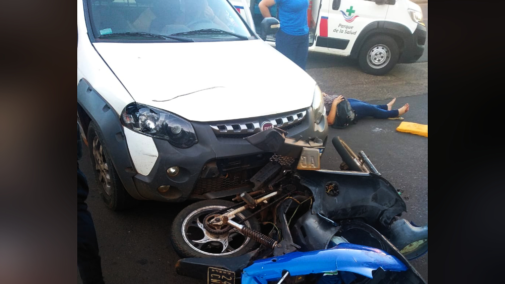 Colisión entre camioneta y moto dejó lesionados en Posadas