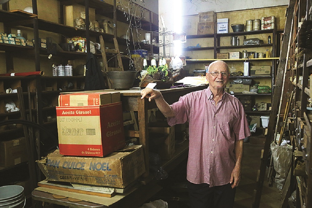 Su padre José en la ferretería, la cual luego Carlos se haría cargo por más de seis décadas en Oberá, hasta que el pasado 30 de noviembre decidió cerrar sus puertas.