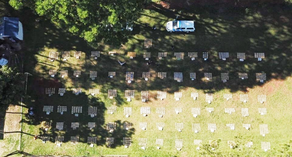 Una vez que se confirmó que era marihuana, desde la Fiscalía Federal de la ciudad de Oberá ordenaron el secuestro y recuento de la droga que tuvo como resultado final un peso de 1.990 kilogramos distribuidos en 2.650 panes rectangulares.