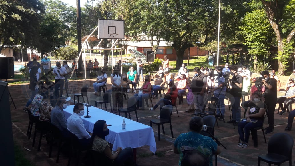 El acto contó con la presencia del gobernador Oscar Herrera Ahuad y el intendente Leonardo Stelatto, además de otras autoridades, beneficiarios y dirigentes barriales.