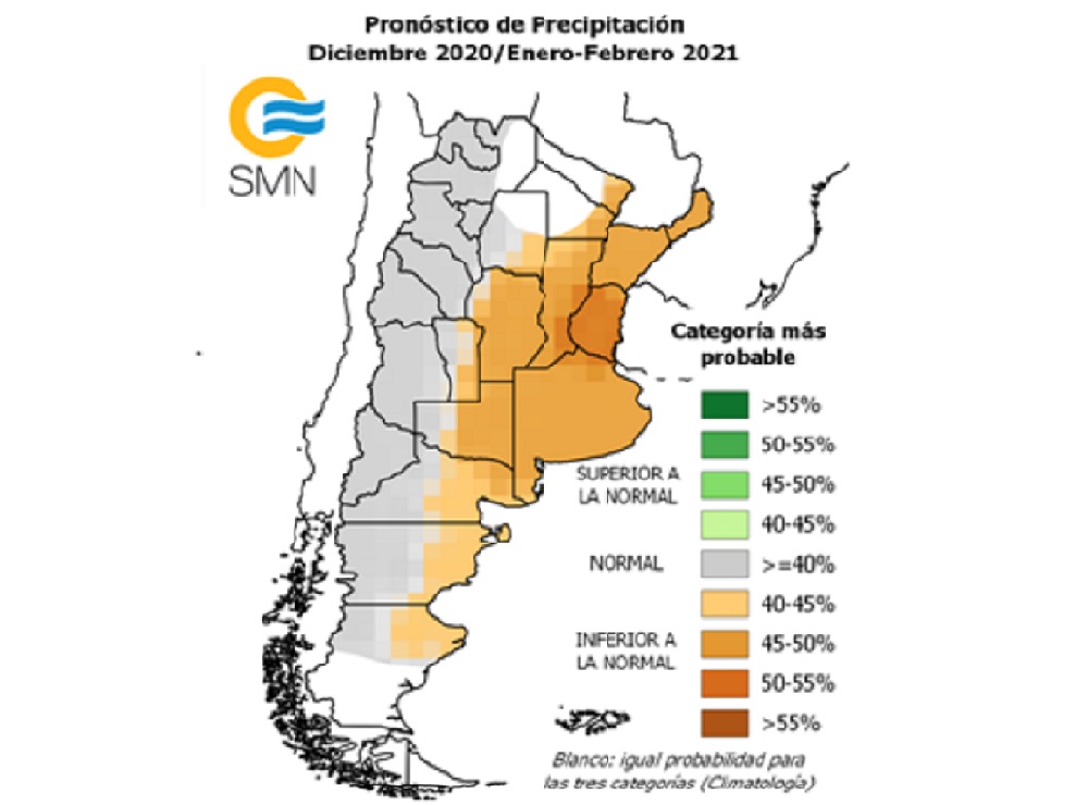 La tendencia climática regional indica que no se debe esperar una recuperación por lo menos hasta el 31 de enero. Durante el mes de Diciembre se espera un panorama similar.