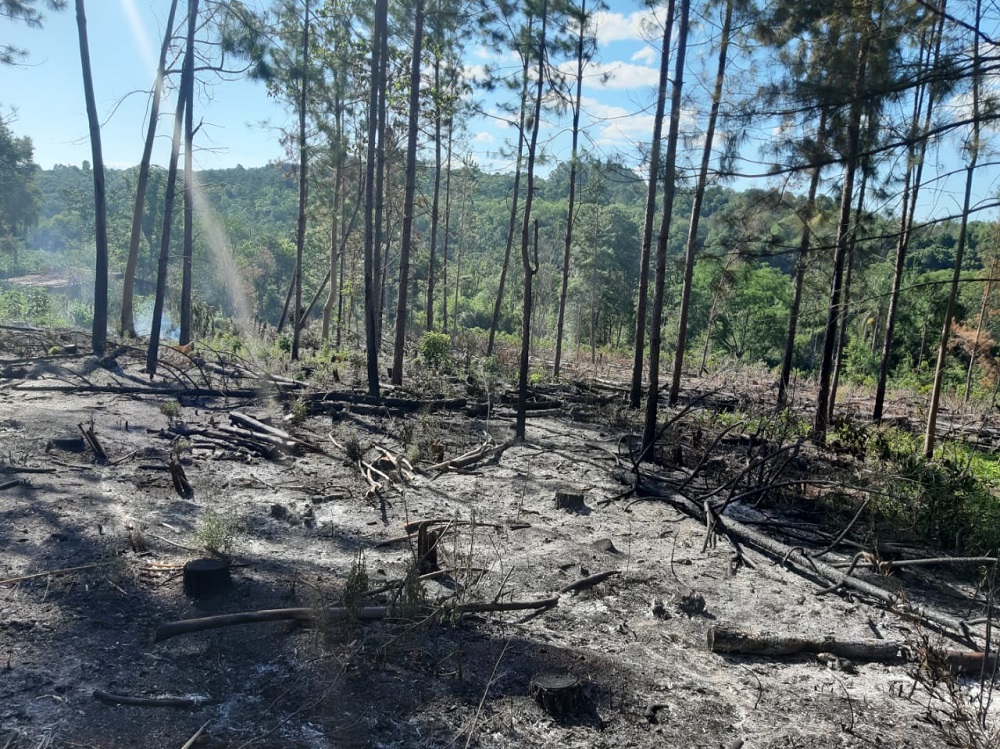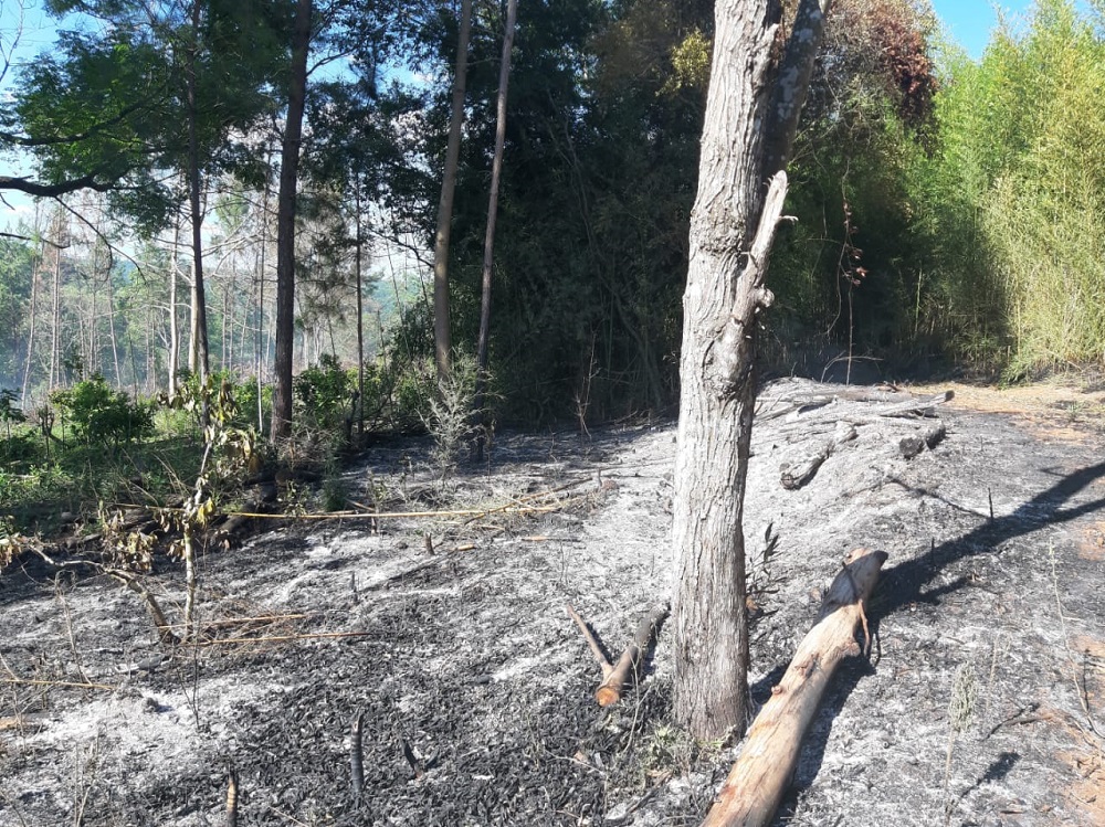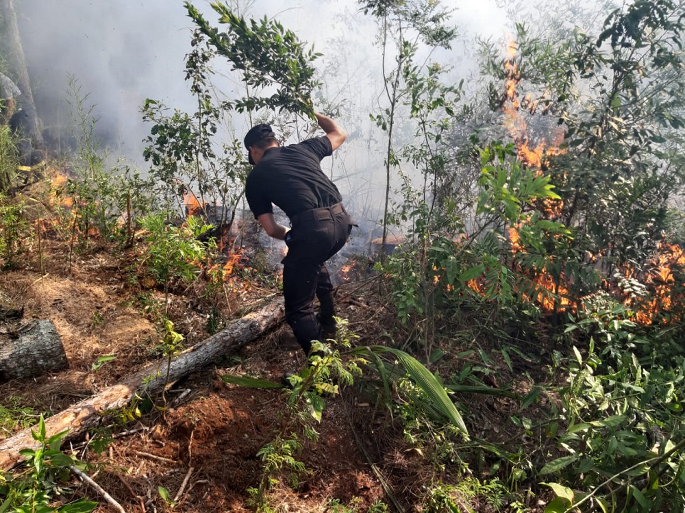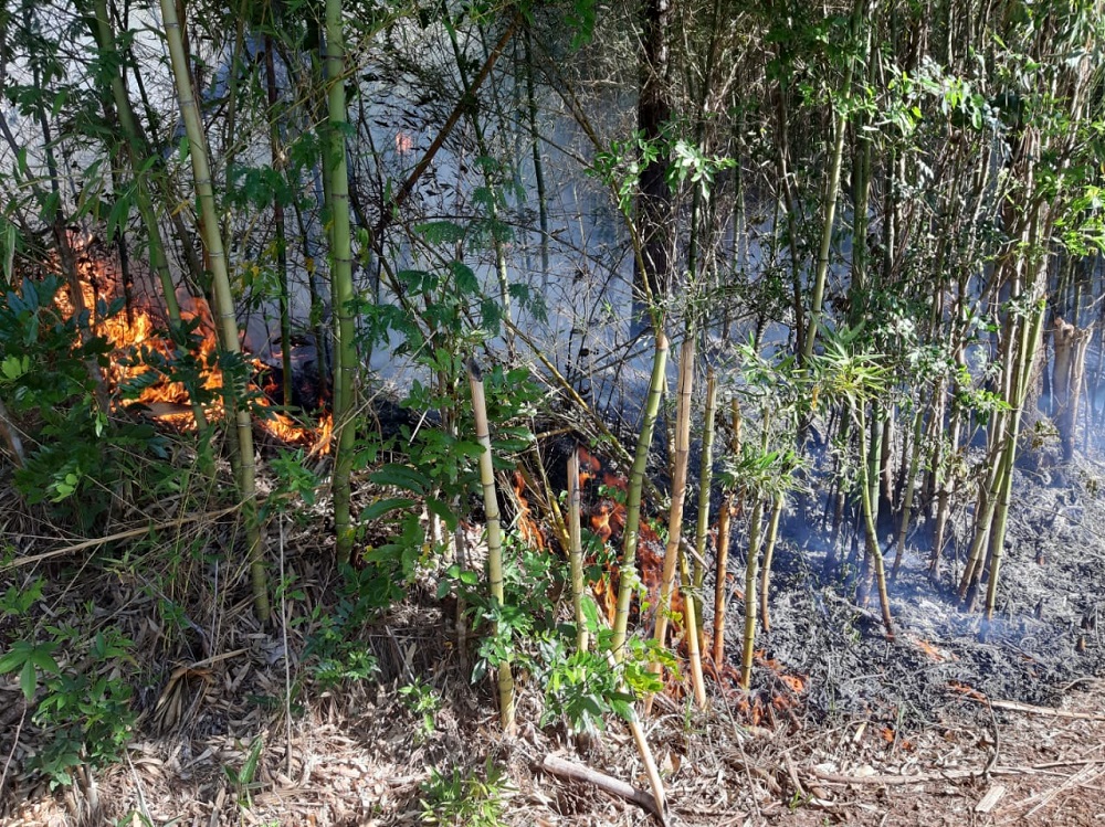Posteriormente y en conjunto con integrantes de la comisaría de Los Helechos, se logró extinguir las llamas que iniciaron y se propagaron en una zona de malezas y restos de pinos y tacuaras, en el Paraje Bayo Troncho.