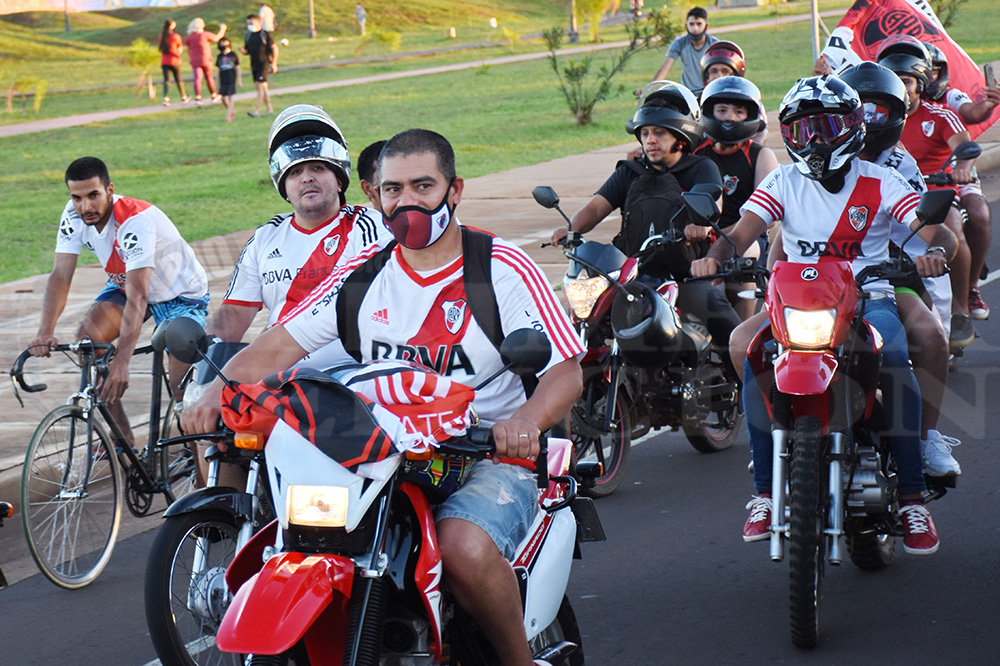 Con el correr los minutos fueron cientos de autos, motos y bicicletas los que se acercaron hasta el paseo para acudir a la convocatoria que realizaron de manera conjunta la Filial Misiones del Club River Plate y la agrupación Sentimiento Millonario.