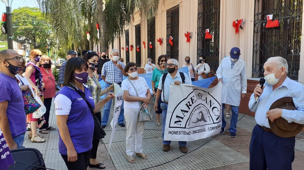 Hoy se convocó el último encuentro de los jubilados y docentes de Marea Blanca del 2020, un año pandémico que dificultó sus reclamos pero que no impidió su lucha. Como cada jueves desde hace ocho años, se reunieron en la Plaza 9 de Julio, frente a Casa de Gobierno.