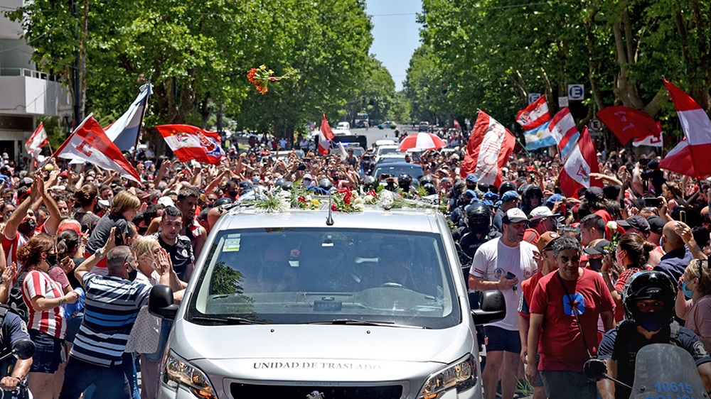 El cortejo que salió desde Ezeiza cerca de las 11 llegó a La Plata pasado el mediodía y en las cercanías del Estadio Uno se encontró con miles de hinchas de Estudiantes que aplaudieron, lloraron y gritaron para despedir al ídolo.