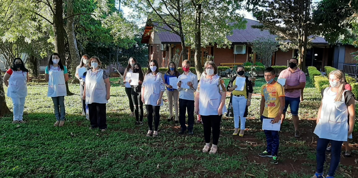 La emotiva ceremonia estuvo presidida por la Directora Norma Freirche de Hut y el plantel docente. Respetando el protocolo vigente de bioseguridad, 14 alumnos fueron los que recibieron sus certificados de terminalidad primaria.