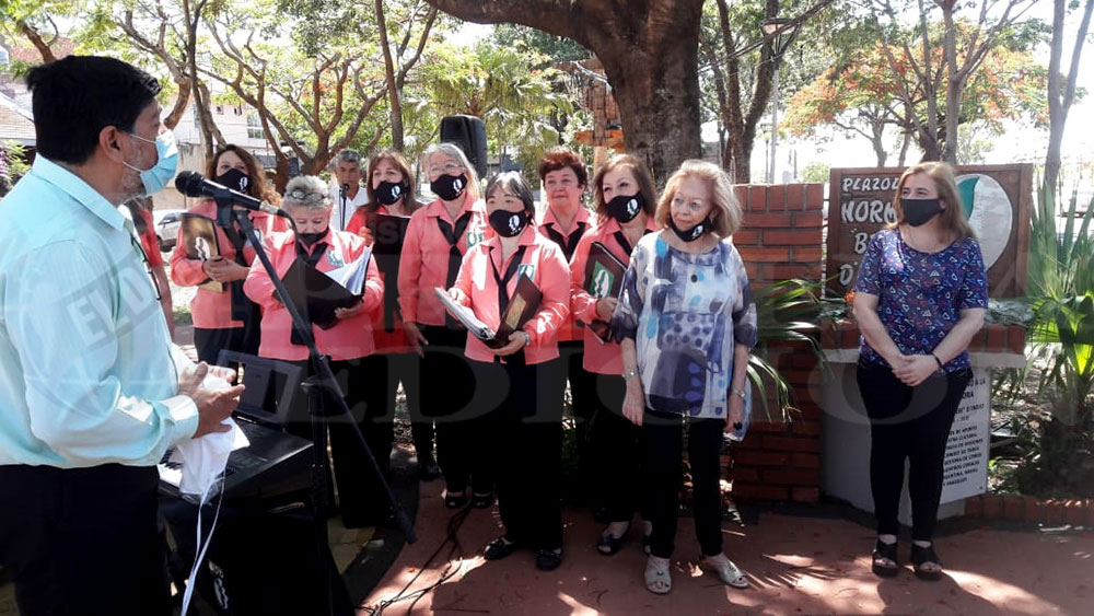La ceremonia se realizó en la plaza que lleva el nombre de la referente del canto coral de la provincial, ubicada en la avenida Mitre Casi Sáez Peña, de Posadas, donde se descubrió una placa y se le hizo entrega de un ramo de flores y obsequios.