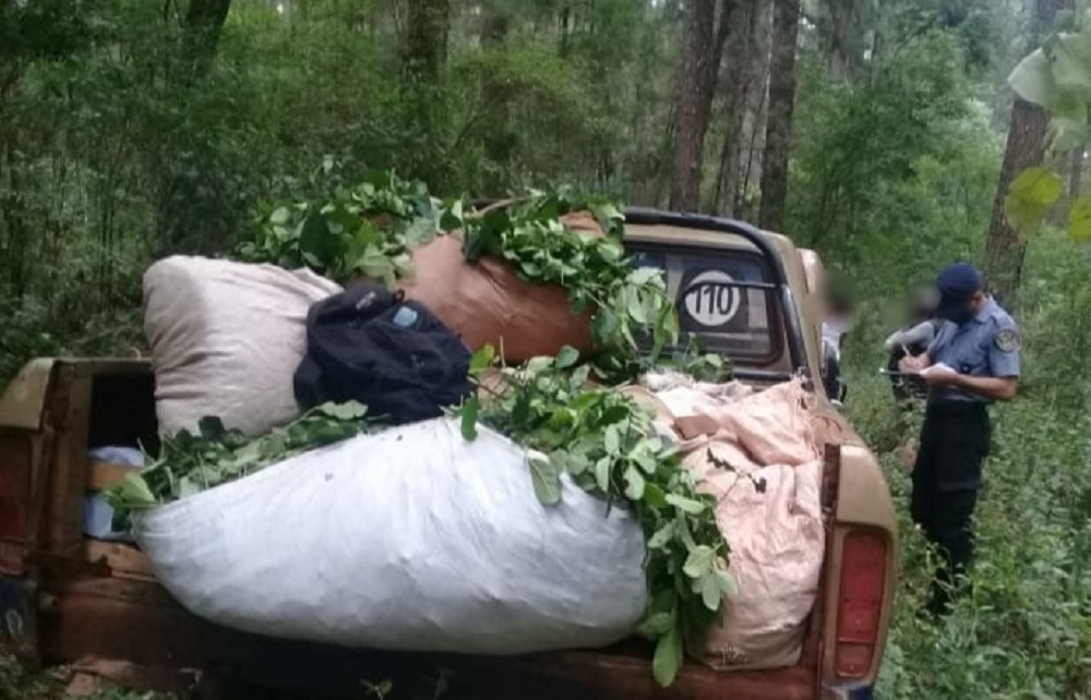 Además, se secuestraron los seis raídos de hoja verde que habían extraído de la chacra y la camioneta que utilizaban para su traslado.