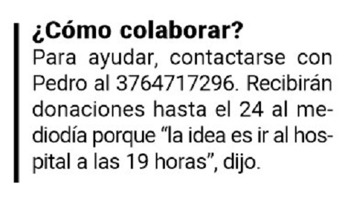 Finalmente, agradeció a las personas de otras localidades y provincias que colaboraron. “Nunca pensé que iba a tener tanta repercusión”, dijo. Y es que, según contó, al comienzo fue una idea de la familia, pero gracias a las redes y a sus amigos, llegaron a gente de todo el país.