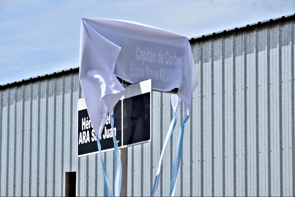 De este modo, se presentó el nuevo nombre de la calle cuya denominación ahora es “Capitana de Corbeta Eliana Krawczyk”. Se recordó que el cambio fue a raíz del Decreto Nacional firmado en marzo por el presidente Alberto Fernández, en el que se honró con designaciones jerárquicas la memoria de los submarinistas.