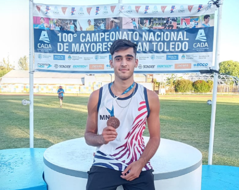 Parece poco, pero tres centímetros significan varios años de entrenamiento para un atleta de salto en alto. Por eso, la marca que consiguió ayer Gastón Benítez (18) en el 100º Nacional de Mayores de Rosario no es poca cosa: el obereño conquistó sus propios límites y alcanzó 2.05 metros, que además le sirvieron para colgarse la medalla de bronce.