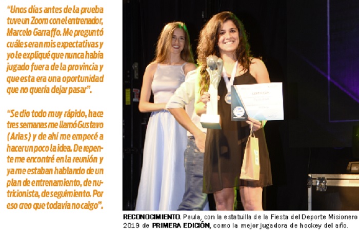 Paula juega al hockey desde que tiene 8 años. En 2019 se quedó con la estatuilla como mejor jugadora de hockey del año en la Fiesta del Deporte Misionero de PRIMERA EDICIÓN. Todo, tras consagrarse campeona del Torneo Oficial con Centro de Cazadores. Ahora, la posibilidad de jugar en Baires.