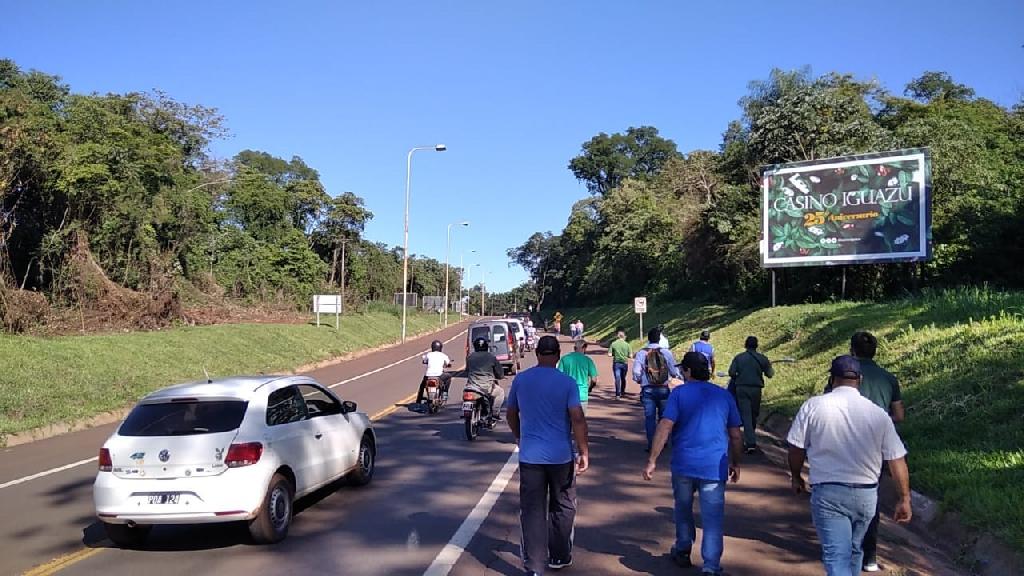 Vecinos de Puerto Iguazú iniciaron un corte de ruta total sobre la ruta 12 para exigir la reactivación del turismo y la reapertura del Puente Internacional Tancredo Neves con protocolos.