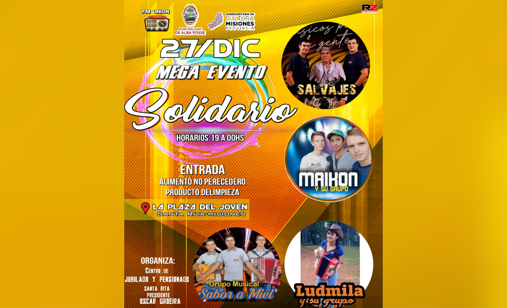 El festival tiene un objetivo solidario: “Queremos destinar todo lo recaudado a los abuelos”, expresó Pedro Fontoura De Lima, uno de los colaboradores del mega evento solidario que se realizará el domingo a las 19 en Santa Rita, localidad de Alba Posse.